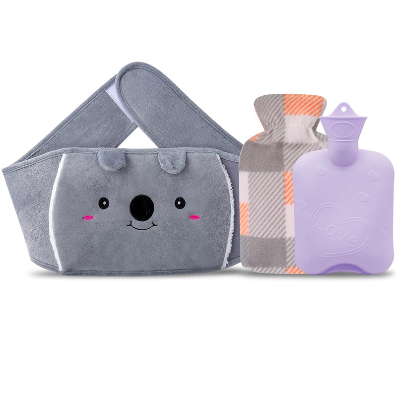 Hot Water Bottle Belt Koala Hot Water Bottle Rubber with Soft Waist Cover, Hot Water Bottle for Neck and Shoulder, Back, Legs, Waist Warming (Purple)