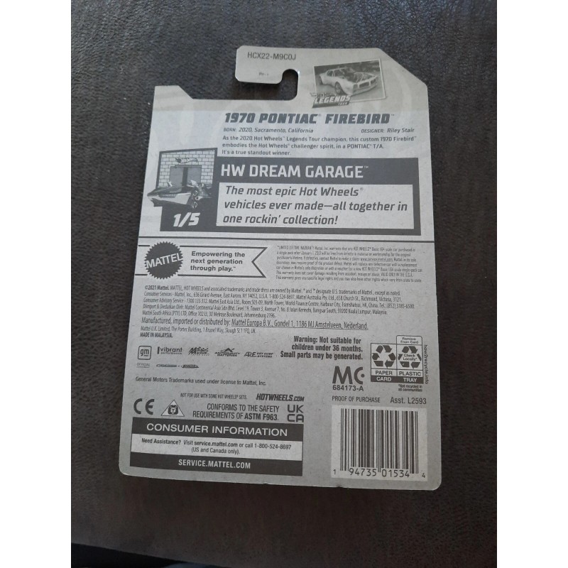 Hot Wheels 1/250 1970 Pontiac Firebird HW Dream Garage 1/5 New For 2022.