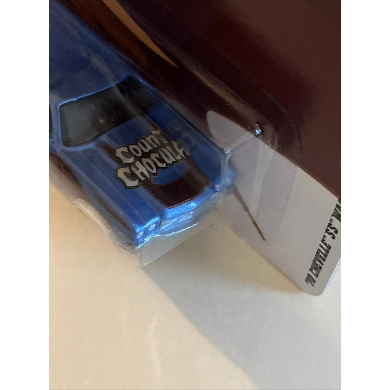 This Hot Wheels car is a special edition Count Chocula '70 Chevelle SS Wagon. It comes in an unopened box and is part of the Hot Wheels Real Riders series. The car is made of diecast material and is a 1:64 scale model.