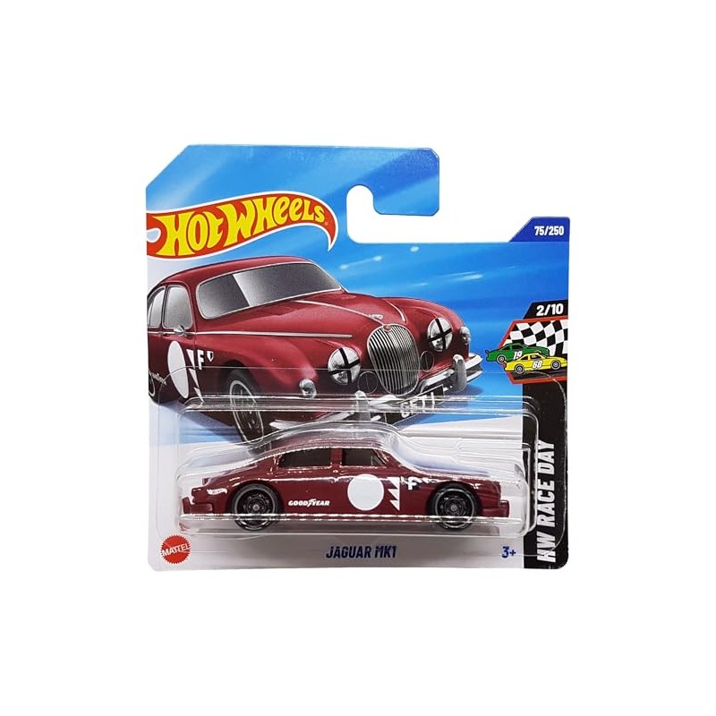 Hot Wheels - Jaguar MK1 - HW Race Day 2/10 - HYX19 - Short Card - Good Year - Dark Red - Mattel 2025 - 1:64
