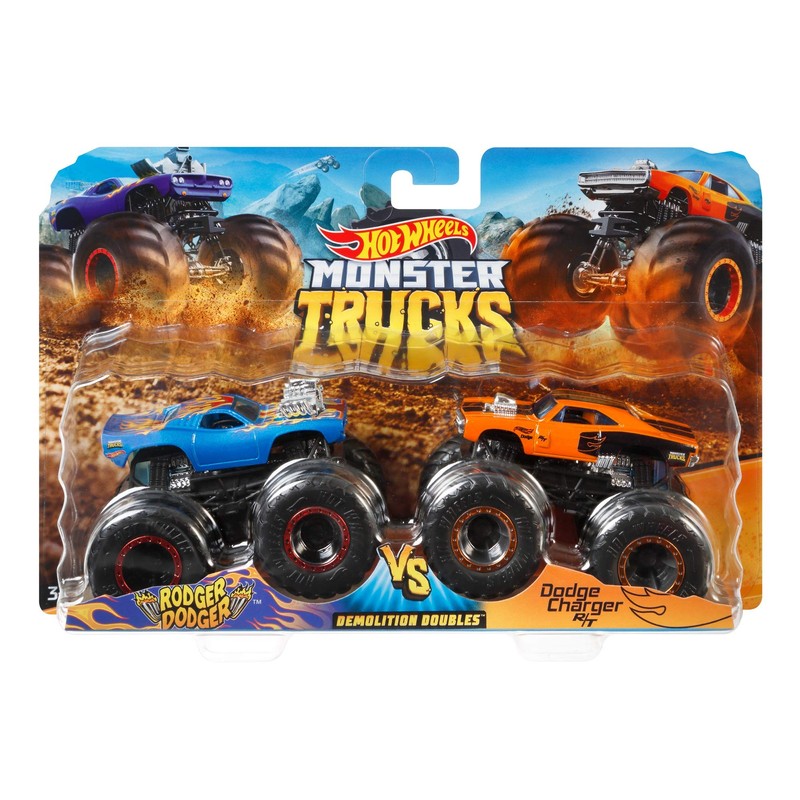 • ​Collection of rivals in a 2-pack of 1: 64 Scale Hot Wheels Monster Trucks (each sold separately)!