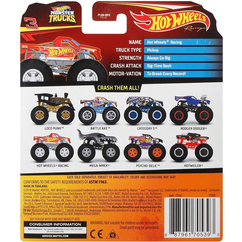 - Each Hot Wheels Monster Truck comes with a crushable car for immediate smashing action.