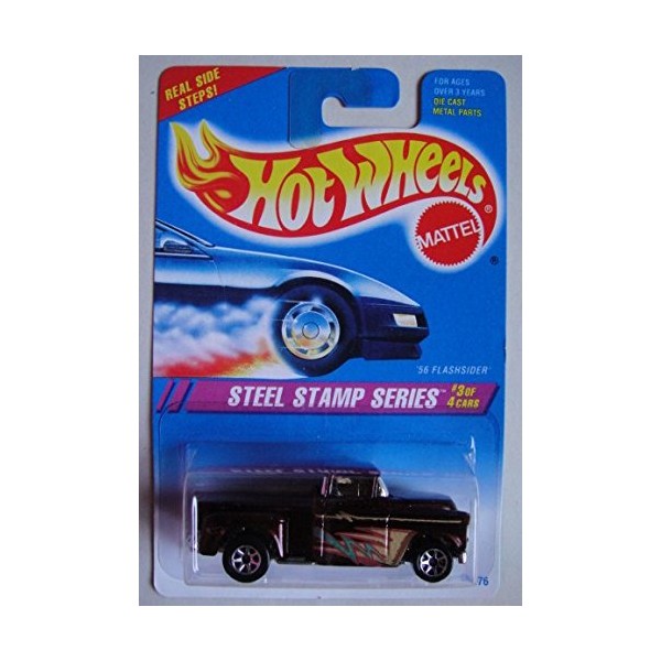 HOT WHEELS STEEL STAMP SERIES #3 OF 4 CARS, RED FLAKE '56 FLASHSIDER 7 SPOKE REAL SIDE STEPS CARD
