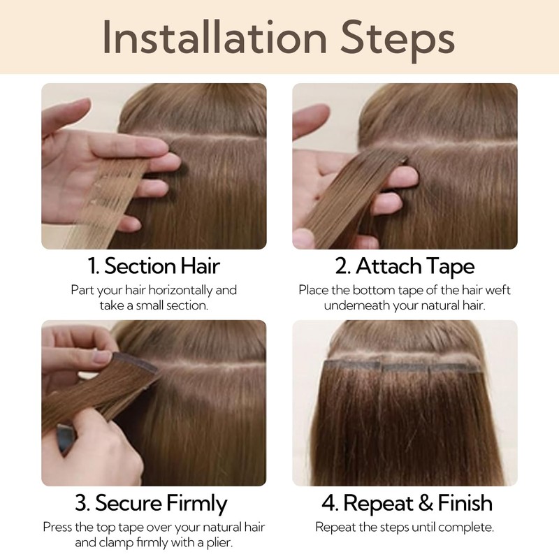 - 【Festes und unsichtbares Klebeband】Jede Strähne der Echthaarverlängerung wird mit transparentem Klebeband fest fixiert. Es besteht kein Grund zur Sorge, dass das Klebeband die Haut reizt, da das Material hypoallergen ist und daher weder Kopfhaut noch Haar schädigt. Außerdem lässt sich das Klebeband mit Remove-Öl leicht und rückstandsfrei entfernen
