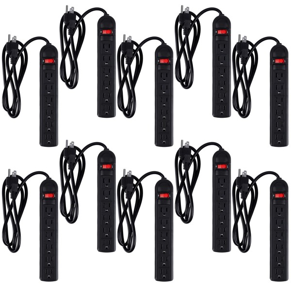 Hoteam 10 Pcs Power Strip Bulk 6 Outlet Surge Protector Power Cord Electrical...