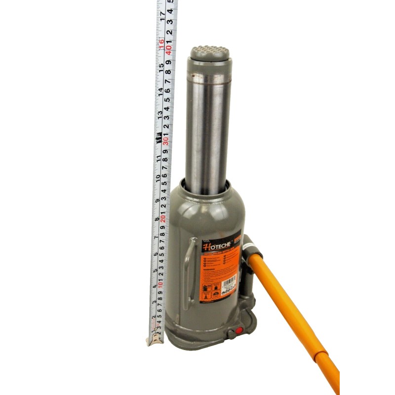 This heavy duty 20 ton bottle jack has heat treated extension screw allows low pickup height adjustment and maximum lift height.