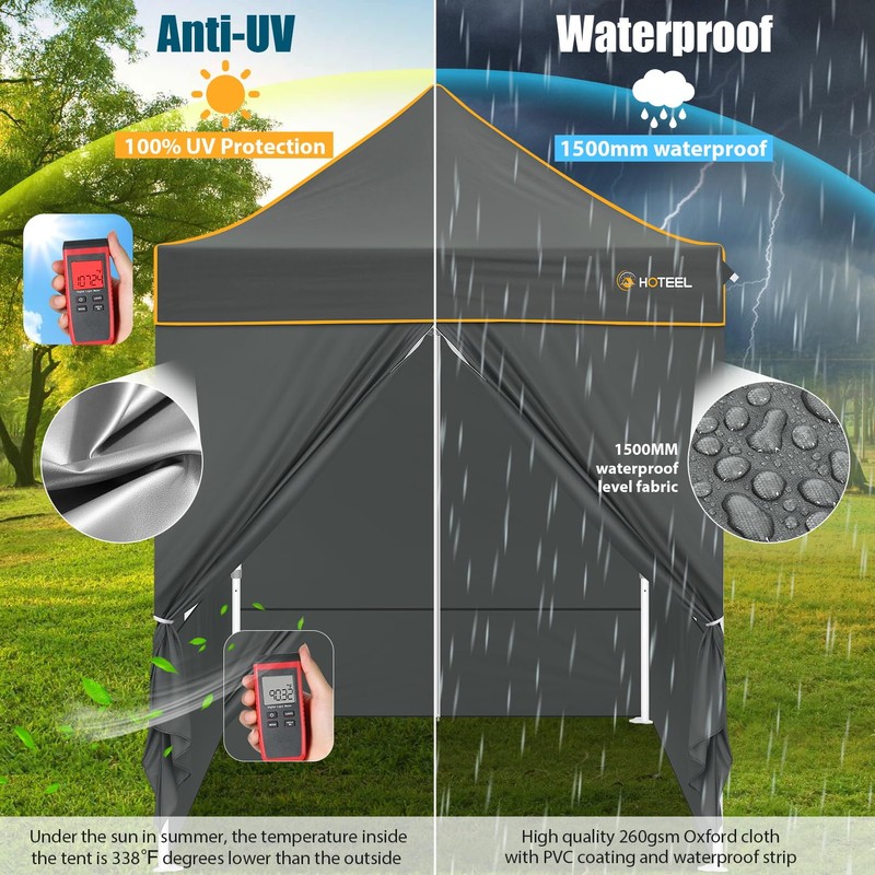 Hoteel 6.6 x 6.6 Pop up Canopy,Easy Up Heavy Duty Canopy with 4 Sidewalls,Upgrade Hexagonal Tube UPF50+ 1500mm Waterproof,Outdoor Canopy Tent with Carry Bag for Commercial Events,Beach,Camping,Grey