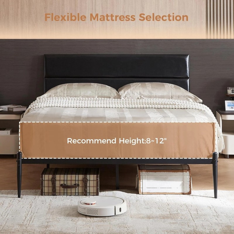 HOTEEL Leather Queen Size Bed Frame All Metal Slats Platform Bedframe with Headboard #