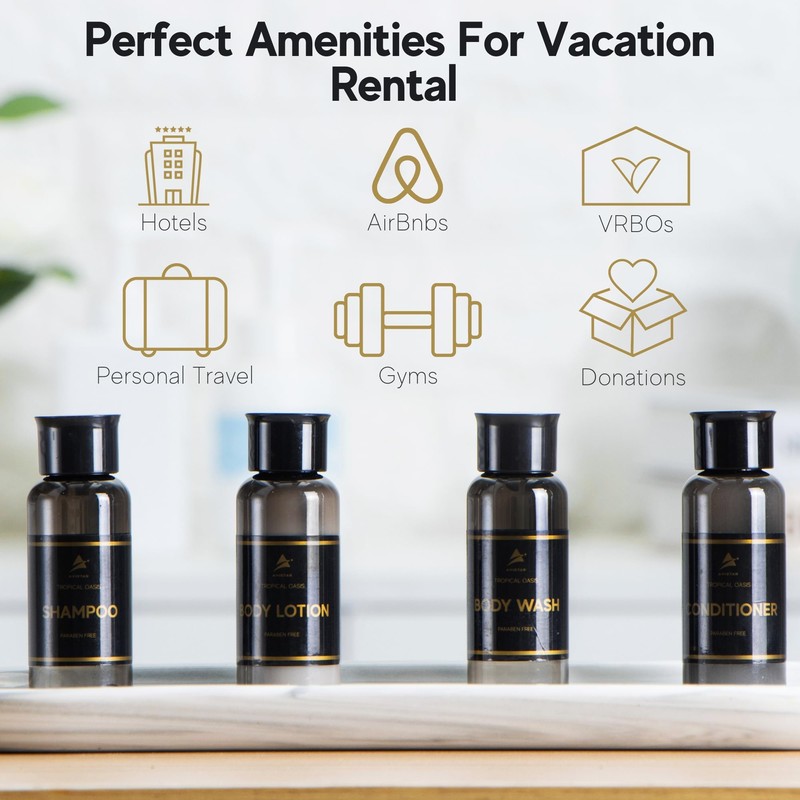 • Ideal for Vacation Rentals & Hospitality Services: Elevate guest experiences in hotels, Airbnb, and VRBO with our comprehensive Bulk Hotel Toiletries set. This complete package, including shampoo, conditioner, body soap, soap bars, and lotion, caters to every aspect of guest personal care.
