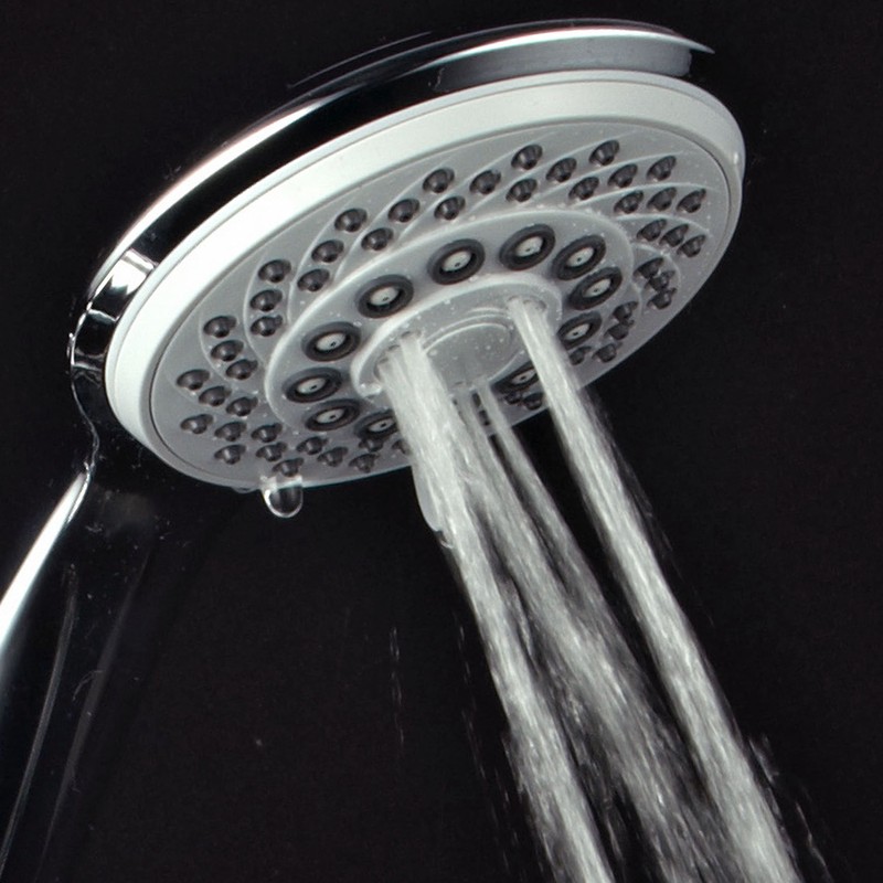 - 22 inch Stainless Steel Slide Bar 6 Full Setting Shower Head and Hand Shower Oversize 4 inch Face 6 settings of each shower include: Power Rain, Pulsating Massage, Hydrating Mist, Rain/Massage, Rain/Mist and Water-saving Economy Rain High-power Precision SpiralFlo dial design 3-zone Click Lever Dial with Rub-clean Jets