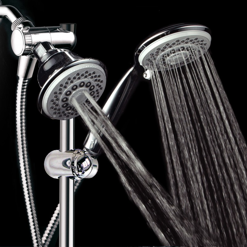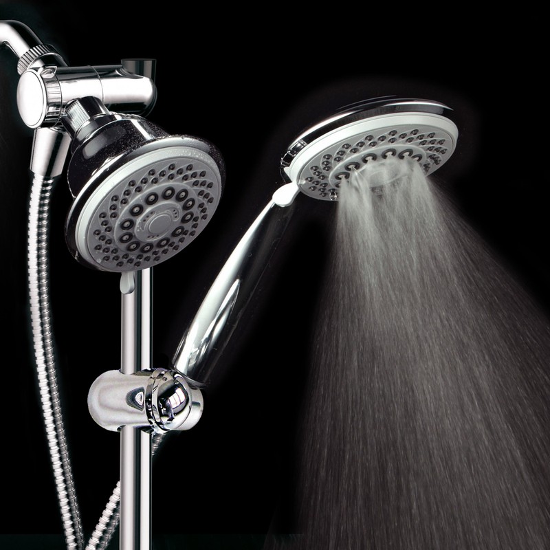 - HotelSpa Instant-Mount Drill-Free Height/Angle Adjustable 3 Way Combo with Slide-Bar Overhead Shower Head, Handheld Shower with Hose and Shower Slide Bar. Use two Showers Heads separately or use Showerhead and Hand Held Shower both together for a choice of 36 full and combined water flow patterns