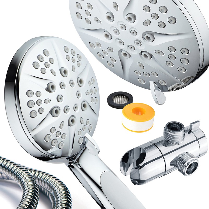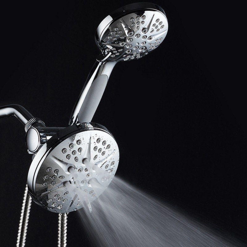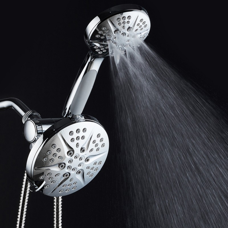 - SHOWER HEADS WITH 48 SETTINGS: Our Hotel Spa Notilus dual shower head instantly transform your ordinary shower into a dual-shower hotel spa. These two shower heads feature a 6-setting 6-inch shower head and a 6-setting 4.3-inch hand shower which allow you to choose between 48 full and combined water flow patterns! Each shower has 6-settings which includes power rain, pulsating massage, power mist, hydro-mist, two mixed settings and convenient water-saving on-off pause mode.