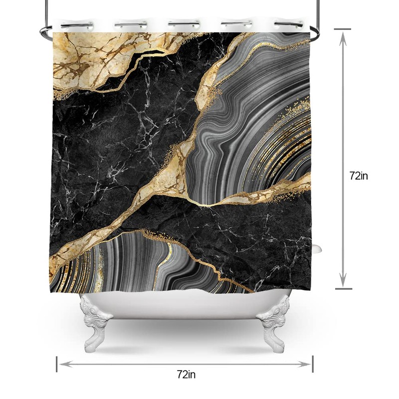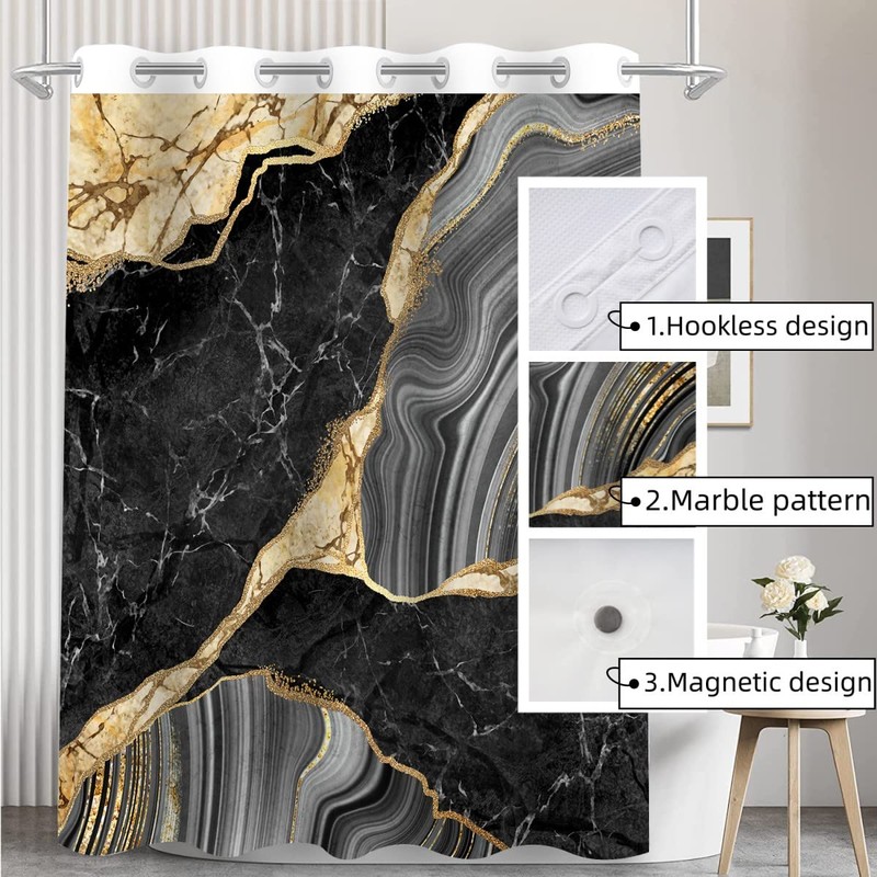 Hotel Style Hookless Shower Curtains 71 x 72 Inch, GRDNON Shower Curtains for Bathroom No Hook Shower Curtain (Black Marble Style, 1 Set)