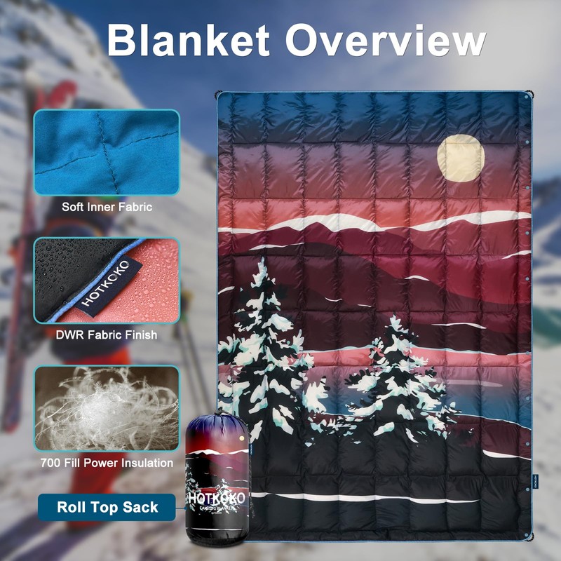 hotkoko Down Camping Blanket,Warm Puffy Lightweight Air Down Camp Blanket Outdoor Travel Quilt for Sleep,Stadium, Hiking & Festivals | Water Resistant, Packable & Compact