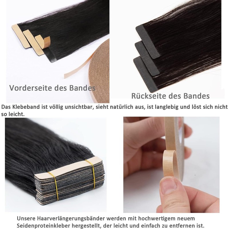 - 3. 20 pieces hair extensions specification and use: tape hair extensions 20 pieces per pack, length of 14-18 inches, approx. 40 g, 20-24 inches, approx. 50 g. If you want to have neat hair, we suggest you can use 3-4 packs; washable, straighten, curly hair, etc.