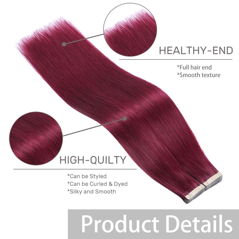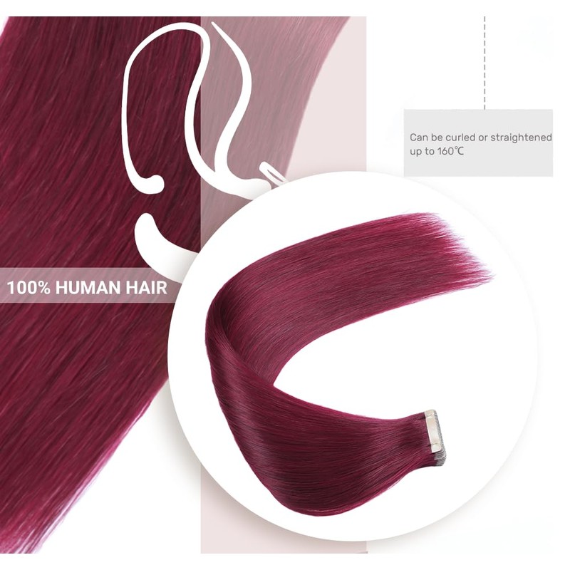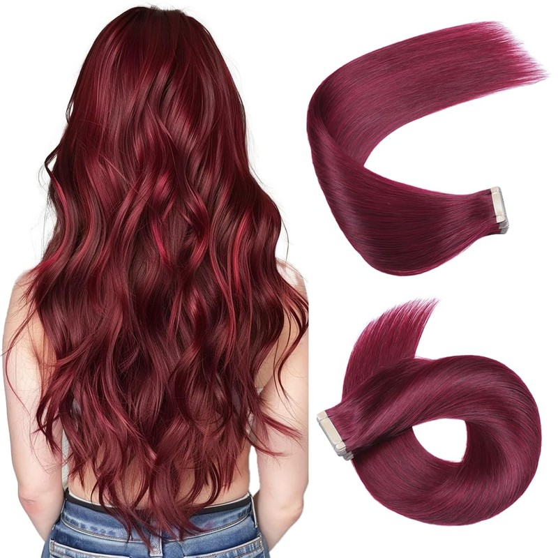 HotLulana Tape Extensions Real Hair Red (#99JA) Extensions Real Hair 16 Inches / 40 cm 40 g Invisible 100% Natural Tape-In Extensions Real Hair 20 Pieces Skin Weft Extensions Real Hair Tape