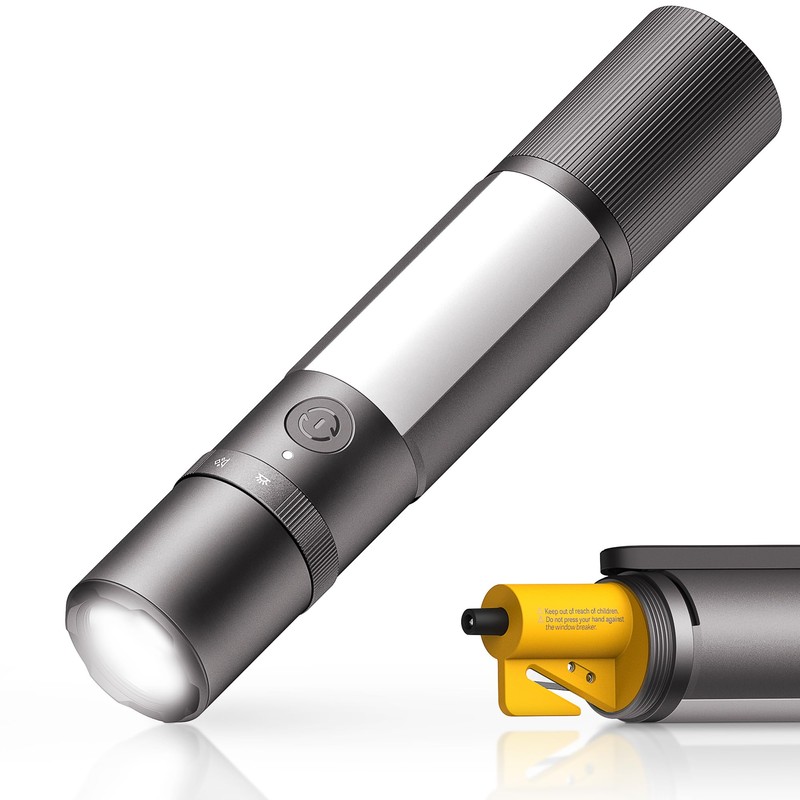 - SEATBELT CUTTER & WINDOW BREAKERThe HOTO emergency flashlight power is equipped with a safety belt cutting knife with an inverted buckle design, which is designed to prevent accidental cuts. The pop-up window breaker, the push-type structure, press firmly perpendicular to the glass window, and the hidden striker pops out, which is safer and labor-saving, keeping you safe from unintentional harm. IP54 water resistance protects against everyday splashes
