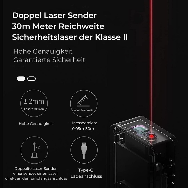 - 【HIGH ACCURACY ±2MM】- Measuring range: 30 m. With two laser emitters, the HOTO laser rangefinder allows complex measurements in just 0.2 seconds.