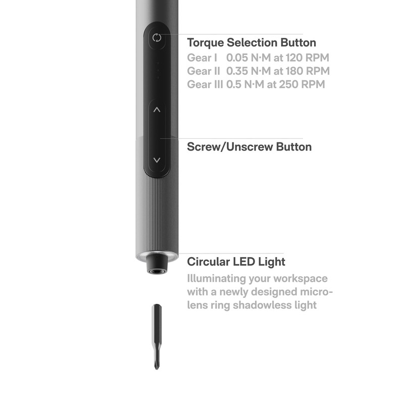 - StarRing Shadow-Free Illumination: Work like a pro with the micro-lens Star Ring Light, SnapBloq mini electric screwdriver delivering shadow-free illumination for a brighter workspace. Ideal for intricate repairs in low-light environments – see every screw head clearly, whether disassembling devices or working in tight spaces