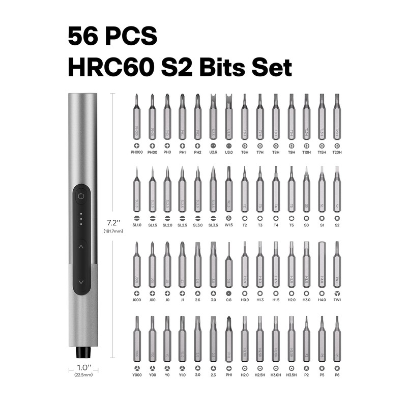 - Long-Lasting Power & Engineering-Grade Strength: The mini screwdriver is equipped with an 800mAh battery that delivers 60 minutes of continuous runtime on a full charge (supports USB-C fast charging). Engineered with aerospace-grade aluminum housing and 56 HRC60 hardened steel bits (S2 alloy), it offers unmatched durability for heavy use. The CNC-machined tips ensure a secure grip on Phillips, Torx, and slotted screws, preventing slippage even in precision tasks