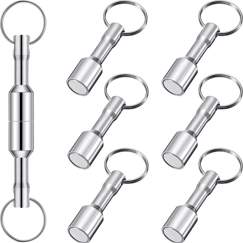 Hotop 6 Pieces Metal Magnetic Key Ring Magnetic Key Ring Pocket Magnetic Key Ring with Split Ring Jewellery Test Magnet for Metal Recyclers, Lovers and Collectors