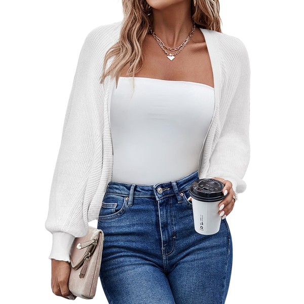 Hotouch Y2K Shrug Sweaters 2023 Long Batwing Sleeve Open Front Knitted Cropped Cardigan Bolero White
