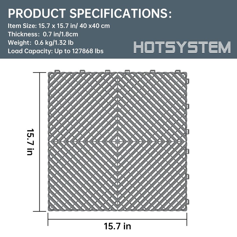 • 【Multi Purpose】HOTSYSTEM provides high-quality interlocking floor tiles for garages, basements, and workshops. We believe that a stronger, safer, and smarter home starts from the ground up.