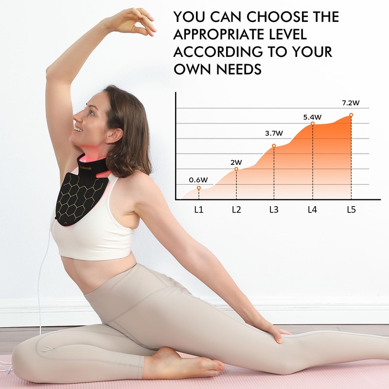• USAGE RECOMMENDATION: With 3 adjustable timing options and 3 intensity levels, our LED red light chest neck lets you tailor your sessions to your needs. To achieve this, use the LED lights 3-4 times a week for 10-15 minutes each time