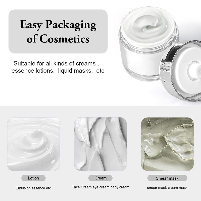 - Wide range of applications: the refillable cosmetic jar has been specially developed for skin care products. Cream pump dispenser cosmetic is ideal for donating all types of skin care and beauty products, hand cream, moisturiser, moisturiser, foundation, sun cream.