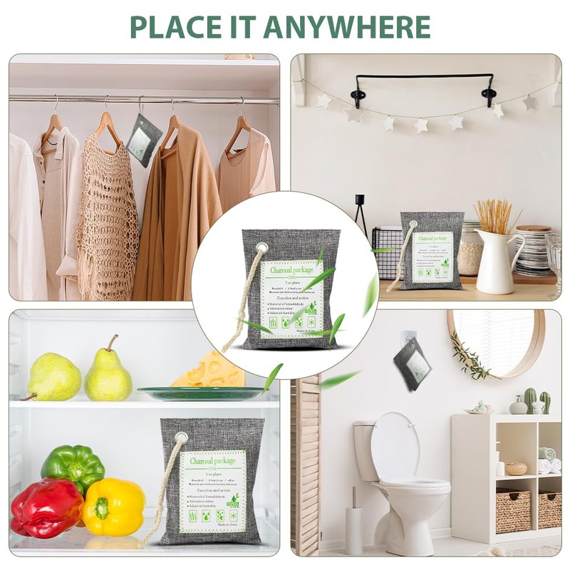 - ✅【Easy to Use】Natural activated charcoal bags have an adsorption circle around them, with the adsorption power decreasing as the distance increases. By placing the charcoal bags in different directions, you can expand the natural adsorption range in large spaces for rapid purification. Simply position the charcoal bag in the desired location, and it will quickly take care of all odors for you.
