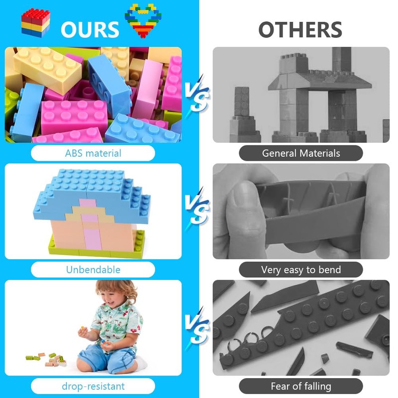 - High-quality materials: our colourful classic building blocks set are made of high-quality ABS material, are safe and non-toxic and are suitable for children to play confidently. Features smooth edges and a tight fit to ensure stability and durability so it won't bend and break quickly.