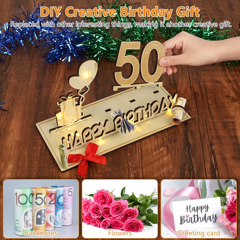 🎁Ein sehr kreatives Geschenk, Sie können dieses Geschenk auch selbst gestalten, die mitgelieferten Accessoires können nach Belieben auseinandergenommen werden, Sie können dieses Geldgeschenk mit Blumen, Geld, Fotos oder glitzernden Accessoires dekorieren, damit dieses Geburtstagsgeschenk auf der Party auffällt!