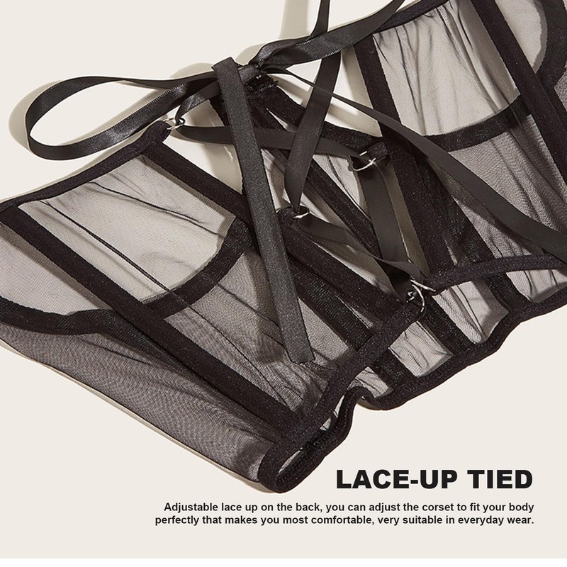 - See through underbust corset, fish bone supports, lace up back closure, breathable, lightweight, comfortable; This garment shapewear is your choice for the ultimate hourglass shape