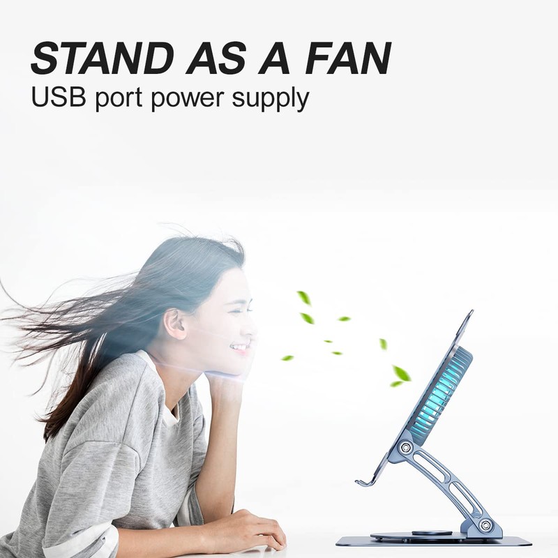 HouDeOS Laptop Stand with Cooling Fan and 360°Rotating Base,Ergonomic Aluminum Alloy Laptop Riser,Dual Rotary Shaft Fully Foldable for Easy Storage,Compatible with Laptops and Tablets
