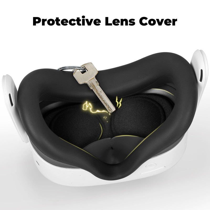 Houdsuem メタクエスト3s 用 アクセサリー,quest 3s EVAレンズキャップ & Quest 3s 用フェイスパッドセット・光漏れ防止・肌に優しいソフトシリコン・防汗・meta quest 3s専用設計・ (ブラック, リコンケース+EVAレンズキャップ)