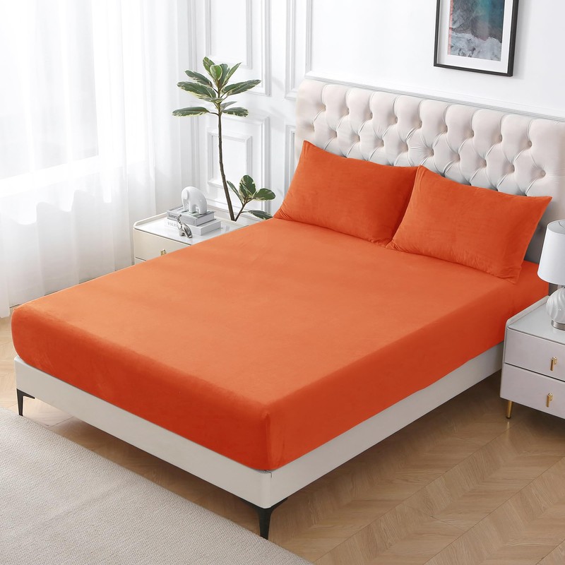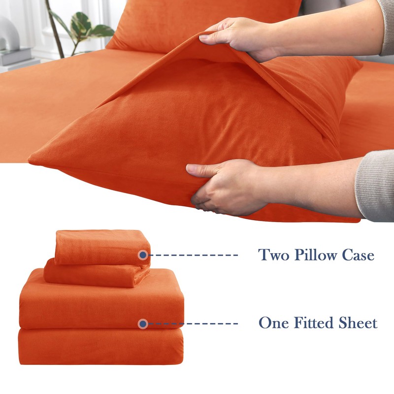 Houieso Penguin Velvet Fitted Sheet, 15" Deep Pocket Design, One Brown Fitted Sheet, Two 20 * 30” Pillowcases, 3-Piece Set (Tangerine, Full)