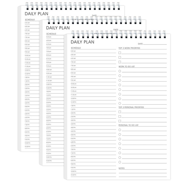 Hourly Schedules 3 Pack - To Do List Notepad 3 Pack, B5(6.5" x 9.8"), Daily Planner for Organizing, Suitable for School&Office&Home, PVC cover