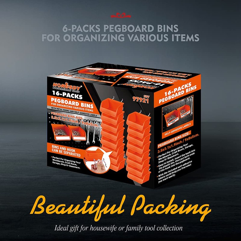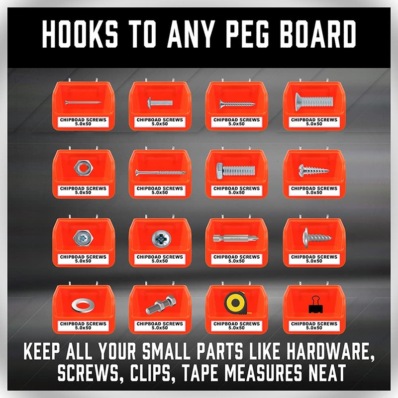 HOURSDY 16Pc Pegboard Bins Kit with Steel Hook, Pegboard Workbench Bins for Parts Storage, Tools Organize Hardware, Attachments, Accessories