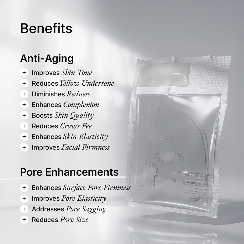 - Dual-Action Absorption Film: A two-step process combines a plumping ampoule with a patented film designed to adhere seamlessly to the face. The unique film enhances absorption, deeper hydration, and maximizes delivery of active ingredients.