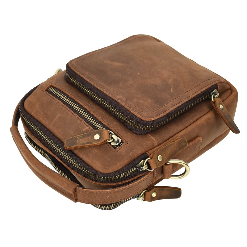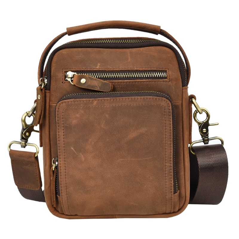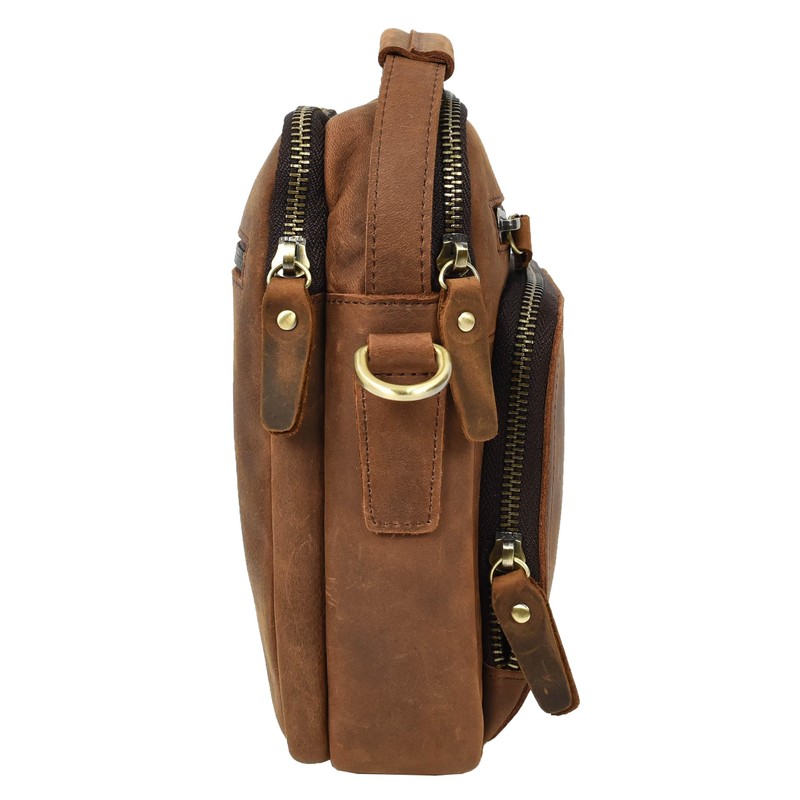 House of Luggage Herren Vintage Leder Multi-Fach Crossbody Bag HLG278 Braun