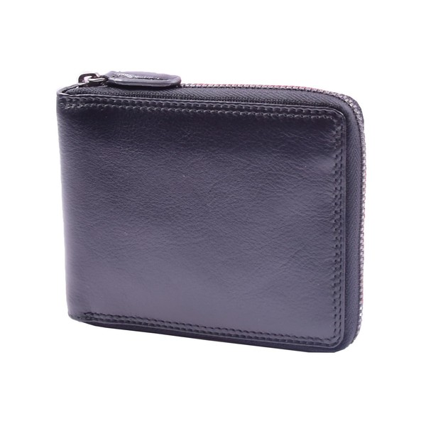 House of Luggage Mens Real Leather Zip Around Wallet Coins Notes RFID Blocking HLG14 (Black)