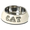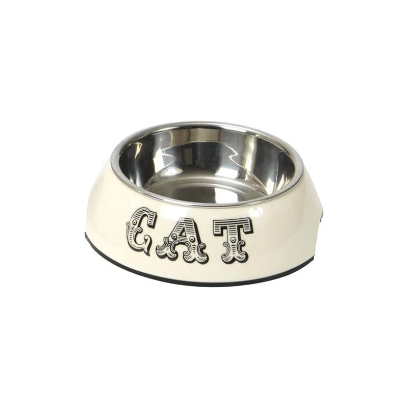 - This cream-colored House of Paws melamine food and water bowl is both fashionable and durable, perfect for your cat.
