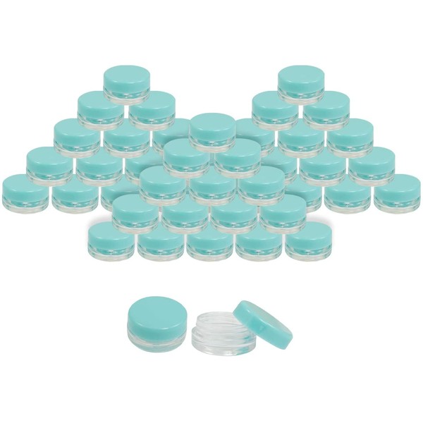 Houseables 3 Gram Jar, 3 ML Jar, Blue, 50 Pk, BPA Free, Cosmetic Sample Empty Container, Plastic, Round Pot, Screw Cap Lid, Small Tiny 3g Bottle, for Make Up, Eye Shadow, Nails, Powder, Paint, Jewelry