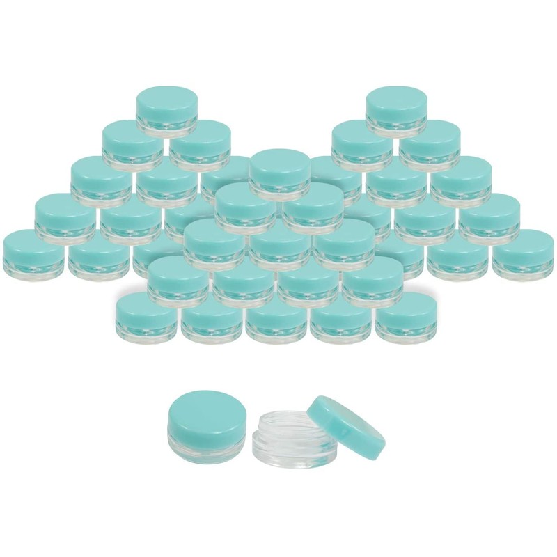 Houseables 3 Gram Jar, 3 ML Jar, Blue, 50 Pk, BPA Free, Cosmetic Sample Empty Container, Plastic, Round Pot, Screw Cap Lid, Small Tiny 3g Bottle, for Make Up, Eye Shadow, Nails, Powder, Paint, Jewelry by Houseables Store