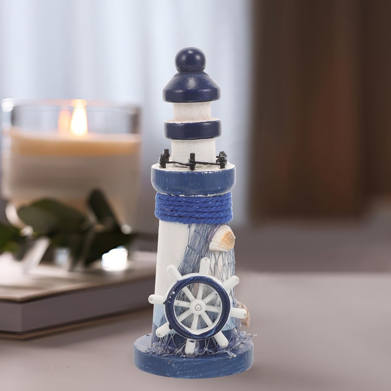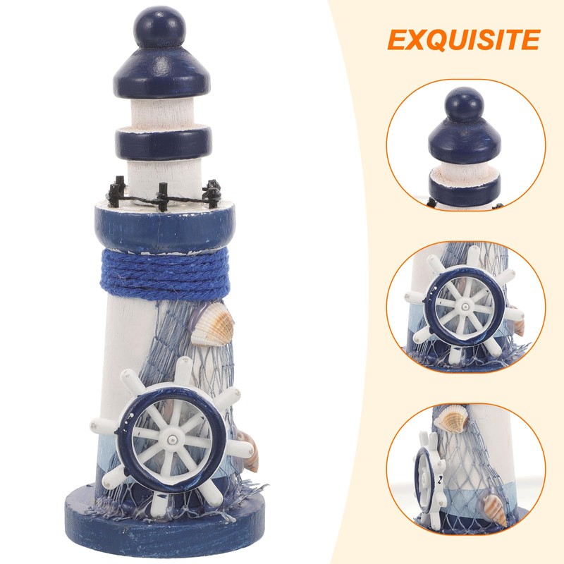 Household Decor Wooden Lighthouse Decor Nautical Lighthouse Figurine Ocean Ru...