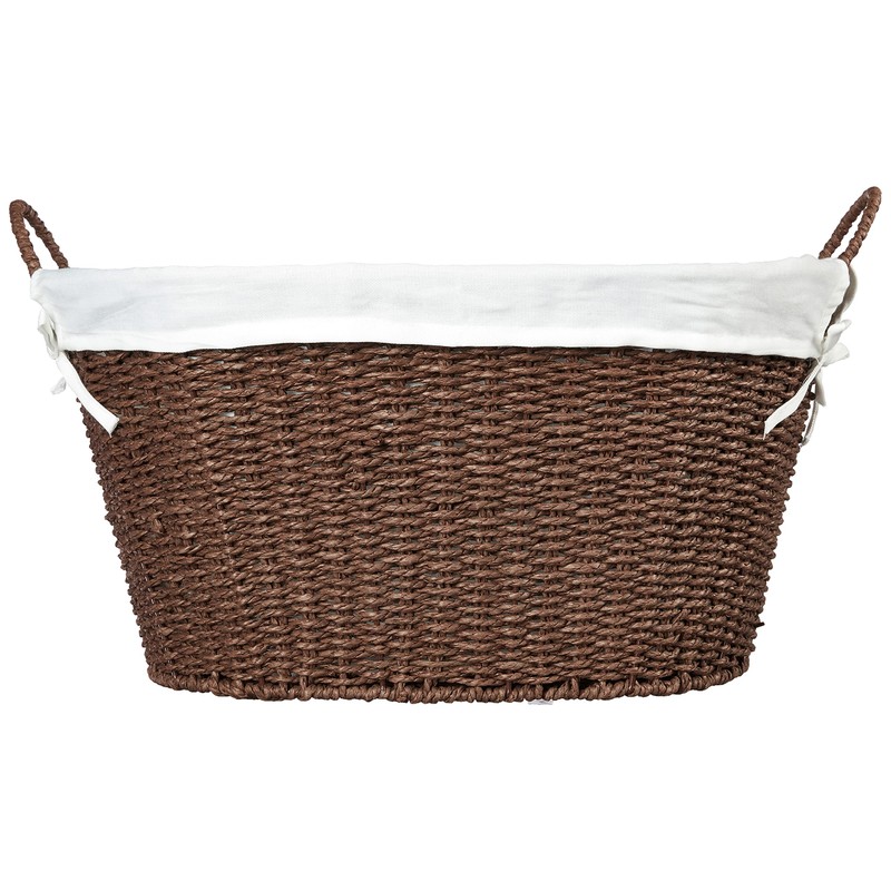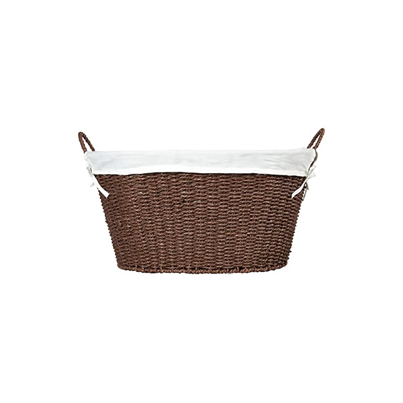 Household Essentials ML-7067 Paper Rope Wicker Laundry Basket with Handles | Comes with Removable Liner | Dark Brown Stain