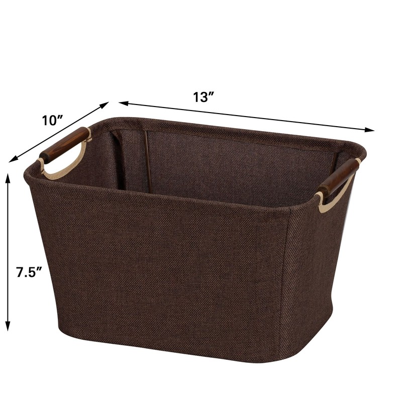 Household Essentials Small Tapered Storage Bin with Wood Handles, Coffee Linen