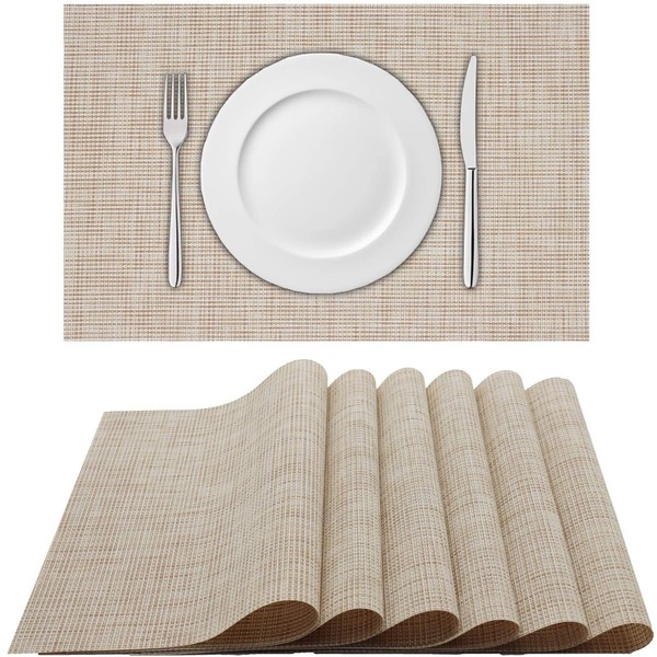 HOUSEKIT Placemats, Heat-Resistant PVC Place Mats, Anti-Skid Washable Table Mats Woven Vinyl Placemats for Dining Table Set of 6