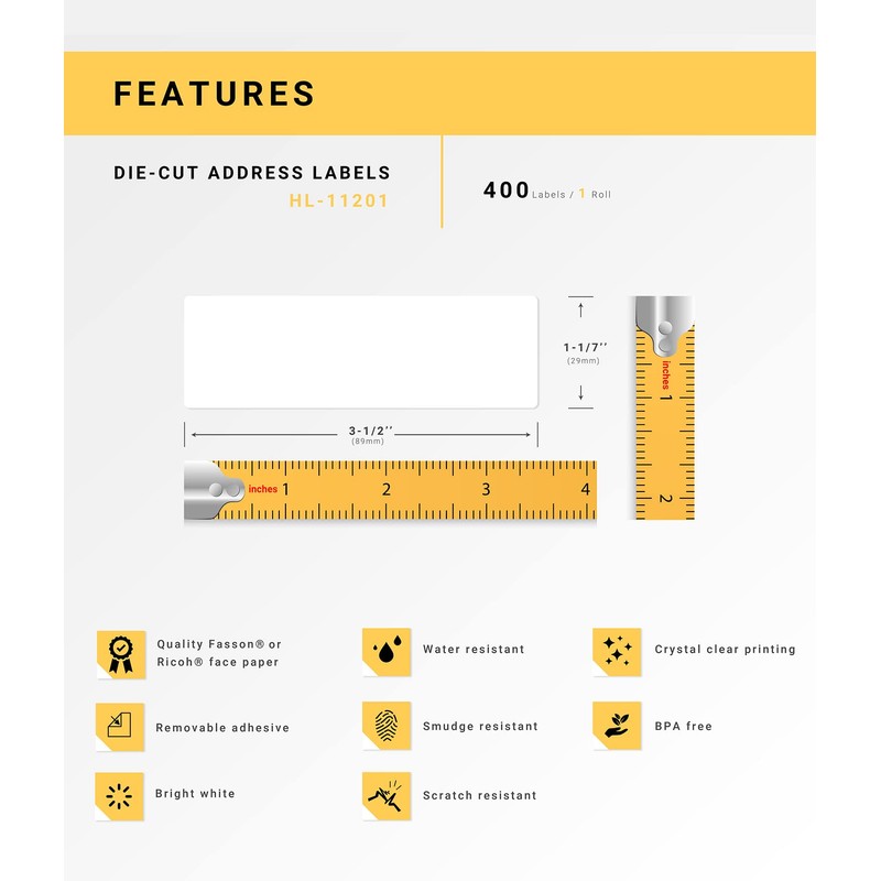 - Bright white, premium direct thermal label with a removable adhesive (no glue or paper residue). Crystal clear printing; fade-resistant; and, water-smudge-scratch-grease resistant.