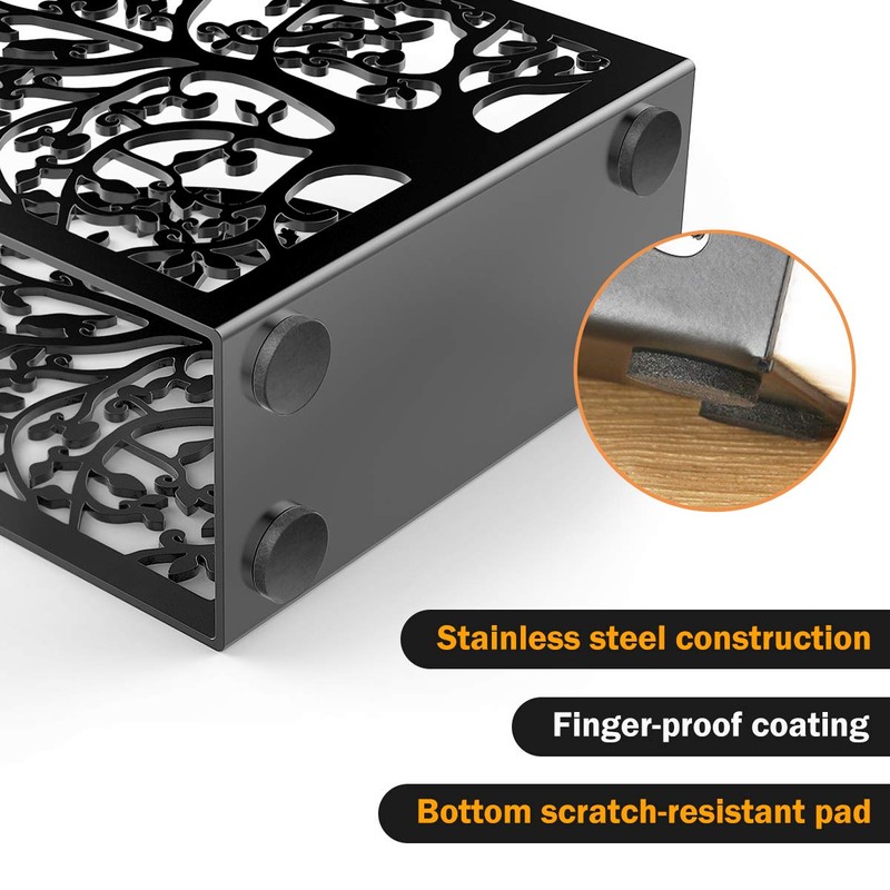 - Durable and Sturdy Construction: Made from wear resistant iron with finger-proof coating, which can effectively prevents fingerprint. Also with anti-slip bottom pad design, this napkin holder will not scratch the table top, very sturdy and durable to use.